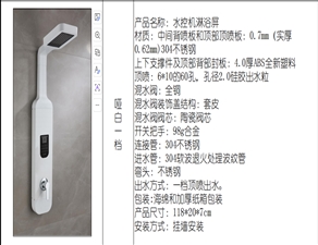 產品名稱:一體式淋浴屏 高端花灑 [ ]