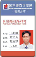 人像卡又稱胸卡,也是人像識別卡,是分辨個人資料的信息卡,就是將人像、姓名、編號、圖像、條形碼及其它資料直接打印在PVC材質上,可以用來做各類工作牌、出入卡、胸卡、會員卡、暫住卡、彩照信用卡、通行證等。