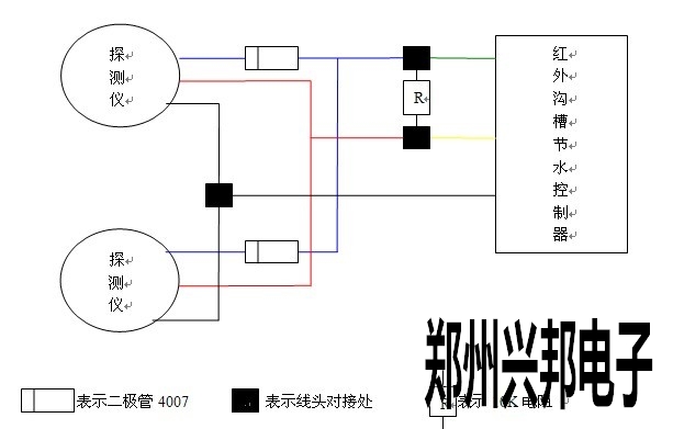 一臺紅外溝槽節水控制器連接兩個紅外探測儀線路修改說明