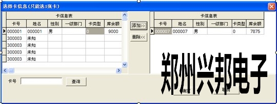在左邊的卡信息表中選擇掛失的卡號,單擊[添加]按鈕添加到右邊的卡信息表中。