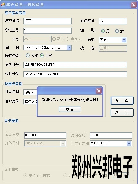 一卡通綜合管理平臺修改卡信息時出現如下提示