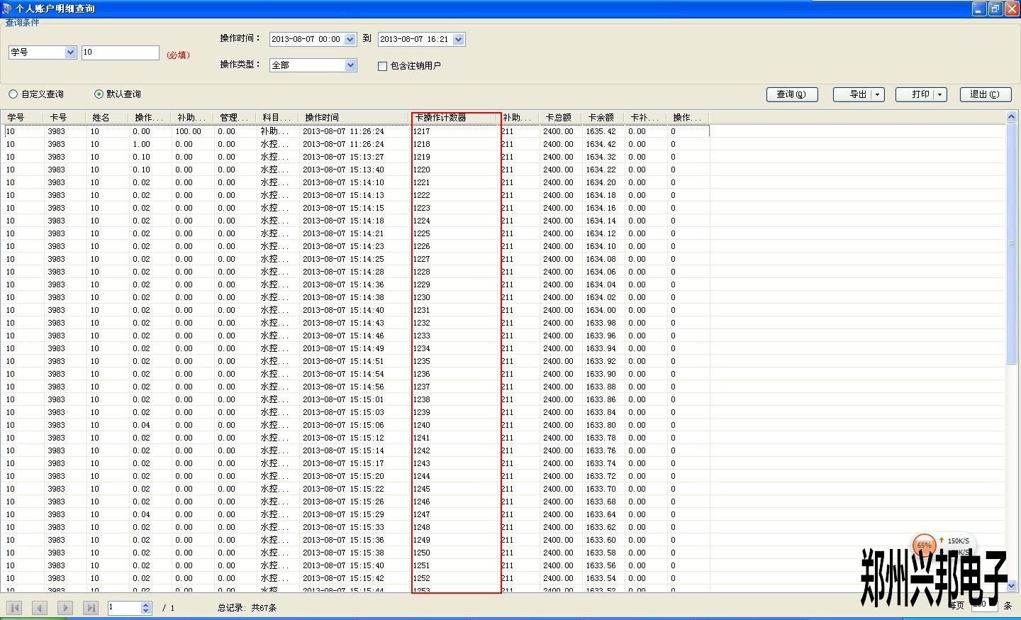 卡操作計數器是根據卡的操作自動生成的,對卡每進行一次操作卡計數器就會增加1,消費時通過查看卡操作計數器是否連續可判斷是否有消費記錄丟失,便于賬目的核對。