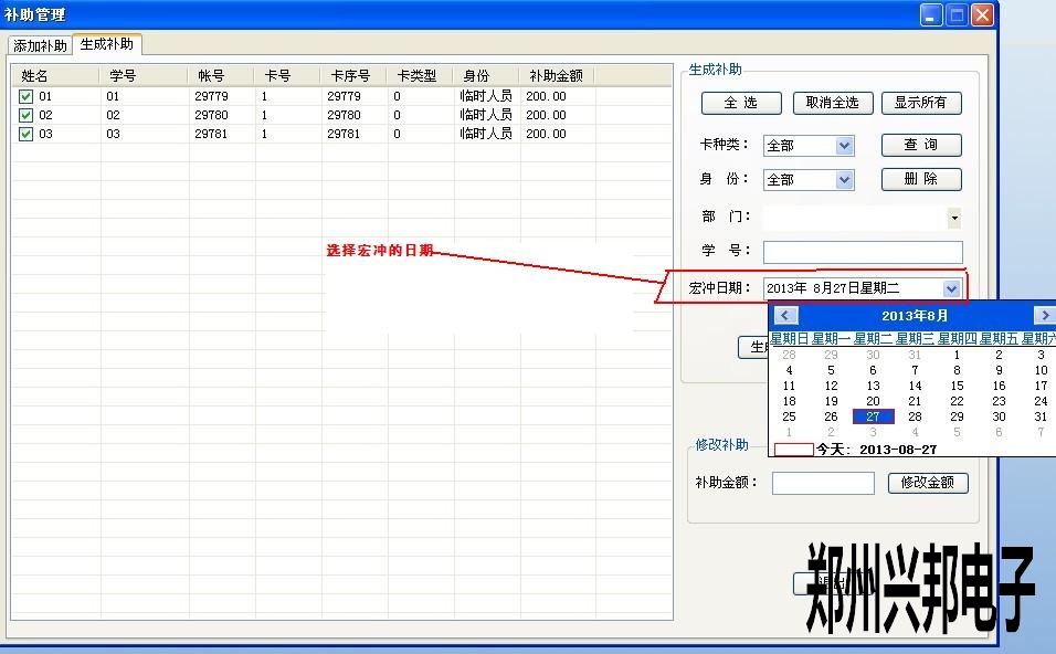 2.然后在生成補助時,選擇宏沖的日期