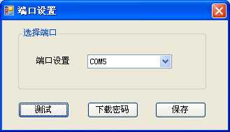 2打開端口設置后選擇端口號,然后點擊測試,下載密碼,保存,測試成功讀卡器會響一聲