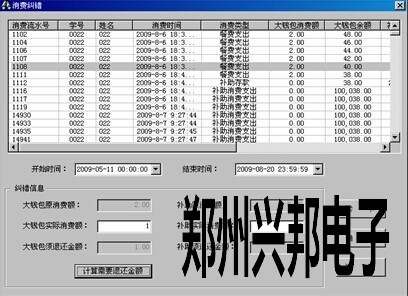 Ø 單擊【讀卡】,在記錄表中單擊選擇消費錯誤的那條記錄,輸入應該消費扣除的實際大錢包及補助金額,