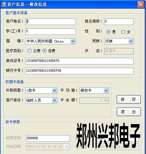 注意:學工號是不能修改的,卡一旦發行后學工號是不允許修改的,學工號在系統中是唯一標識,不允許重復。