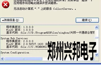 問題描述:CAN軟件打開后能正常運行,點啟動采集時出現下面的錯誤。無法啟動計算機“.”上的服務CollectServer
