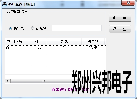 當掛失卡找到后就需要對卡片解掛,重新使用。在卡管理中右鍵點擊解掛,輸入需要解掛的學號或者姓名點擊查詢,出現卡信息,將卡片放于讀卡器上,雙擊信息,卡片信息與卡片必須一致,否則會出現提醒卡片與信息不符,不是掛失卡不能進行解掛操作。雙擊解掛成功后,此卡片狀態為正???。在操作過程中完成后再將卡片拿走,否則容易導致卡片異常。