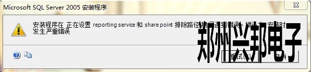 我們公司最新消費機的刷卡消費和數據采集,都是通過can軟件來控制和顯示的,采集的信息都通過can軟件設置存在數據庫2005中,所以安裝can軟件,首先要安裝數據庫2005,但在安裝數據庫2005時,安裝程序可能會在正在設置reportingshre point 排除路徑 期間遇到錯誤,遇到的錯誤如圖所示