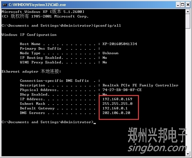 1.通過命令行來查看電腦的IP、網關、和DNS,步驟大致為:開始>>運行>>輸入‘’cmd‘’>>輸入"ipconfig/all",點擊回車,可以看到下圖界面