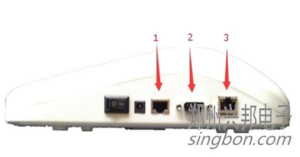圖3 升級機側面圖(注:1為水晶頭插口;2為九針母頭插口,3為網線插口)
